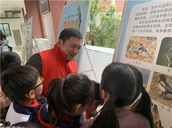 在項(xiàng)城市政和路小學(xué),工作人員通過展板介紹、開主題宣講課,讓學(xué)生認(rèn)識(shí)鳥類,走進(jìn)大自然,更好地保護(hù)和愛護(hù)鳥類。同時(shí),他們還積極與學(xué)生互動(dòng),討論如何從身邊小事做起,保護(hù)鳥類,愛護(hù)大自然,使學(xué)生認(rèn)識(shí)到“鳥類是人類的朋友”,做到不干擾鳥類的遷徙,保護(hù)鳥類的棲息地,與鳥和諧共處。