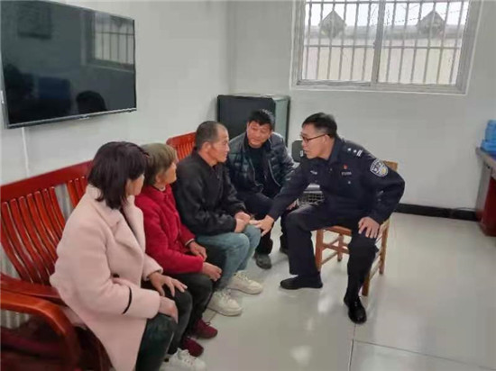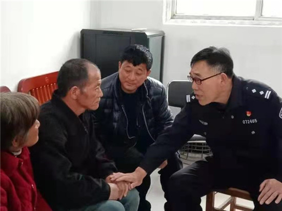 馮塘派出所內,八十多歲高齡的老母親顫抖地握住劉新立的手,早已泣不成聲,面對周思營為家人團聚露出的開心笑臉,老母親和其胞弟胞妹幾度激動下跪,都被周思營真情婉扶,圍觀的親戚村民們都很感動,對指導員周思營同志豎起了大拇指。