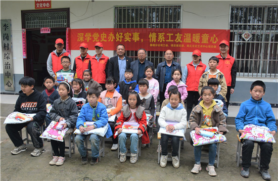 “經(jīng)過我們公司老員工、村支部書記李金棋的牽線聯(lián)系,俺一行6人今天一大早驅(qū)車近200公里到這里開展‘深學(xué)黨史辦好實(shí)事、情系工友溫暖童心’活動(dòng)。一方面是學(xué)黨史辦實(shí)事的需要,也是關(guān)愛農(nóng)民工支持地方教育事業(yè)的需要......”中建七局下屬公司在商丘市一個(gè)項(xiàng)目生產(chǎn)部的負(fù)責(zé)人黃彥光如是說。