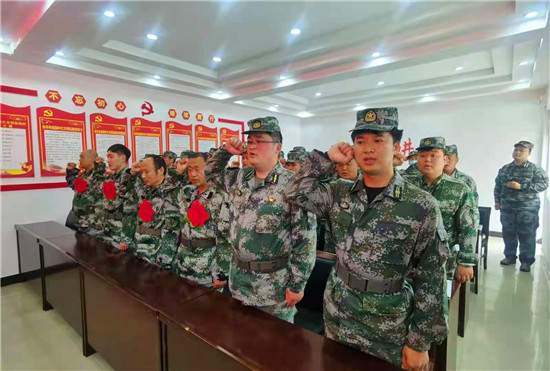街道黨工委委員、武裝部長陳偉亞作工作報(bào)告、宣讀民兵干部任職命令,呼點(diǎn)、提問基干民兵隊(duì)員,并帶領(lǐng)全體民兵進(jìn)行宣誓。同時(shí)新入隊(duì)民兵代表曹香龍做了發(fā)言。③7