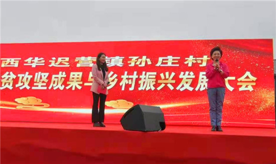 隨后,中央廣播電視總臺(tái)央視新聞主播、國(guó)務(wù)院扶貧辦形象大使海霞緩緩走上舞臺(tái),用河南話向?qū)O莊村的父老鄉(xiāng)親問(wèn)好,并獻(xiàn)上真摯的祝福。