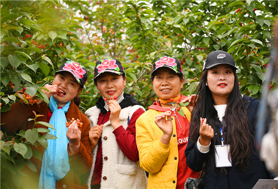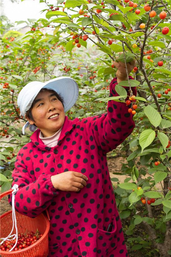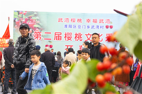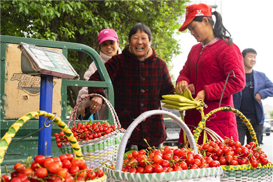 4月25日上午9時(shí),細(xì)雨蒙蒙的淮陽(yáng)區(qū)豆門鄉(xiāng)武灣村千畝櫻桃園開(kāi)啟第二個(gè)采摘節(jié),為期半個(gè)多月。這個(gè)沙潁河灣里的小村莊,有數(shù)百年的櫻桃種植史,至今,村里依然存活著幾株年代久遠(yuǎn)的老根繁衍的櫻桃樹(shù),并保持著旺盛的產(chǎn)果量。如今,沙潁河灣里的武灣村千畝櫻桃園一片緋紅,采摘的新鮮櫻桃,每斤賣10多元,果農(nóng)們迎來(lái)豐收節(jié)。③6