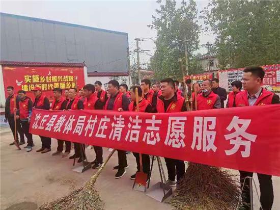 4月23日,沈丘縣教體局干部職工到范營鄉(xiāng)八里棚行政村,開展村莊清潔志愿服務(wù)活動。
