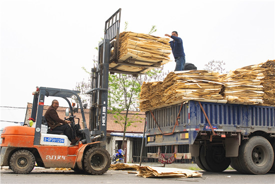 將樹木初級加工,晾干后,賣到外地制作各種板材,成為近年來淮陽區(qū)新站、王店、劉振屯等地農(nóng)民摸索出的一條致富路。圖為淮陽區(qū)新站鎮(zhèn)一個(gè)木材加工企業(yè)正在將刨好板片裝成外賣。