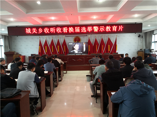 為切實(shí)樹好正確導(dǎo)向,選準(zhǔn)干部,把班子配強(qiáng),圓滿完成換屆工作,4月26日上午,商水縣城關(guān)鄉(xiāng)組織收看換屆選舉警示教育片。鄉(xiāng)黨委班子成員、脫貧責(zé)任組長、駐村第一書記、村黨支部書記及鄉(xiāng)機(jī)關(guān)全體人員集中收看了換屆選舉警示教育片。