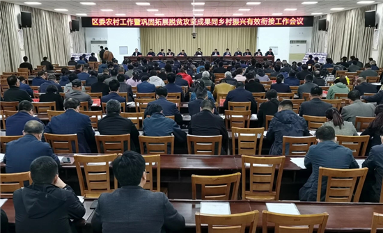 會議主要任務(wù)是認真貫徹落實中央、省委、市委農(nóng)村工作會議和鞏固脫貧攻堅成果同鄉(xiāng)村振興有效銜接會議精神,總結(jié)安排全區(qū)農(nóng)業(yè)農(nóng)村和鞏固拓展脫貧攻堅成果同鄉(xiāng)村振興有效銜接工作,確保全區(qū)“三農(nóng)”工作高效率推進、高質(zhì)量發(fā)展。