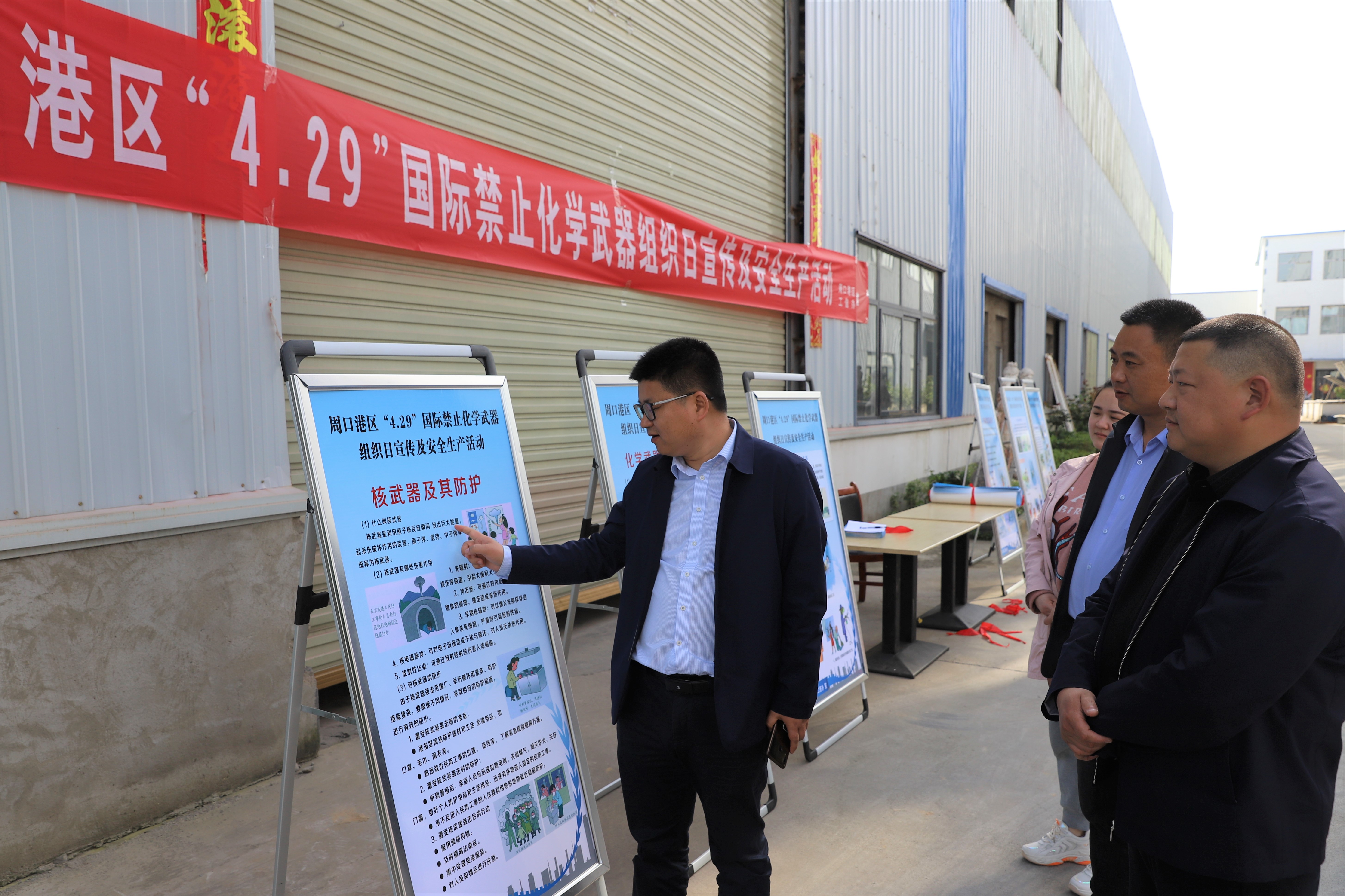 本報(bào)訊 (記者 宋風(fēng) 通訊員 趙磊 文/圖) 為廣泛宣傳《禁止化學(xué)武器公約》履約工作的豐碩成果,維護(hù)我國(guó)大國(guó)形象,提高全社會(huì)對(duì)化學(xué)武器履約工作的認(rèn)知度,按照市工信局安排部署,4月27日,周口港區(qū)工信辦聯(lián)合安全辦、消防工作室開展了“4.29”國(guó)際禁止化學(xué)武器組織日宣傳暨安全生產(chǎn)部署活動(dòng),港區(qū)30多家企業(yè)負(fù)責(zé)人參加活動(dòng)。