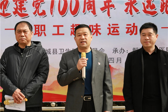 為慶祝中國共產(chǎn)黨建黨100周年,豐富職工精神文化生活和業(yè)余生活,進一步開展全民健身活動,增強干部職工身體素質,展示廣大干部職工團結拼搏的精神風貌。4月29日,由鄲城縣衛(wèi)健委主辦,鄲城縣中醫(yī)院承辦的“喜迎建黨100周年 永遠跟黨走”職工趣味運動會在縣衛(wèi)健委舉行??h衛(wèi)健委黨組書記、主任付登霄,縣總工會副主席王滿倉,縣衛(wèi)健委副主任徐濤、劉清俊、肖儉,副科級干部王曉琳,縣第二醫(yī)療健康服務集團縣中醫(yī)院院長水新華出席運動會。由縣衛(wèi)健委、縣第二醫(yī)療健康服務集團總部及所屬醫(yī)共體單位組成的8個代表隊歡聚一堂,共享運動競技的快樂。