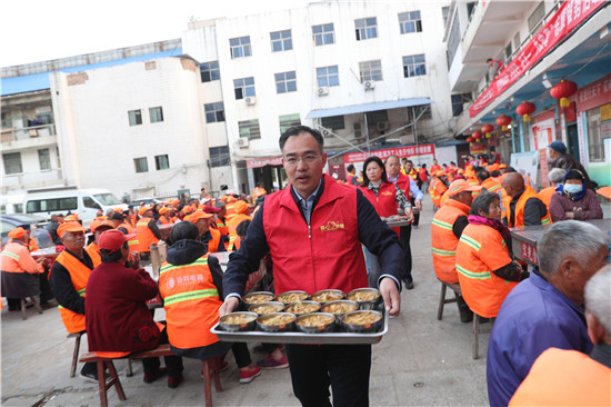 當日早上6時,鄧昌鋒與志愿者早早趕到“愛心粥屋”服務(wù)站,一到粥屋便主動加入到忙碌的服務(wù)中。鄧昌鋒帶頭給環(huán)衛(wèi)工盛粥、分發(fā)饅頭、端菜,志愿者一個個忙得不亦樂乎。待環(huán)衛(wèi)工人用餐完畢,鄧昌鋒與志愿者一起清掃地面、整理桌椅,及時將碗筷清洗干凈。大家雖然有些勞累,但每個人的心里都充滿了愉悅感和幸福感。“沒想到,縣委統(tǒng)戰(zhàn)部給俺送來愛心物資,還請了歌手給我們唱歌,聽著心里暖暖的!”年過六旬的李大嬸吃著飯感謝的話說個不停。