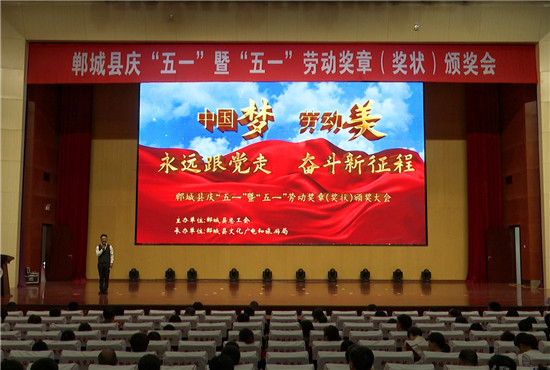 4月29日下午,鄲城舉行慶“五一”暨“五一勞動獎?wù)拢í劆睿鳖C獎會??h委副書記王獻(xiàn)超、縣人大常委會副主任張愛聯(lián)、副縣長張凱、縣政協(xié)副主席李素梅、縣總工會主席王輝出席頒獎會。