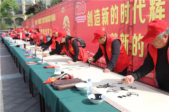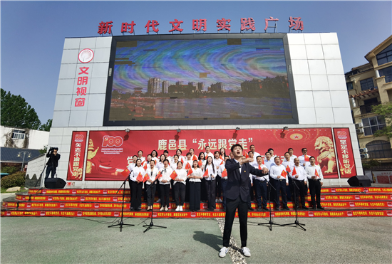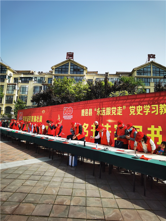 啟動儀式上,許四軍為縣委黨史學習教育實踐活動志愿服務隊授旗;侯自峰宣讀了《鹿邑縣“永遠跟黨走”黨史學習教育系列實踐活動實施方案》;現場所有參加人員共同合唱了歌曲《沒有共產黨就沒有新中國》,觀看了群眾文藝匯演,參加了百名書法家、百名畫家同書同繪百米長卷活動。②8