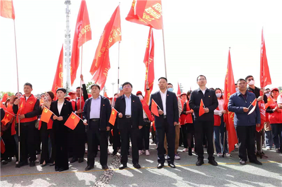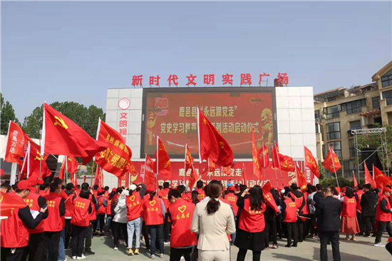 為慶祝中國共產黨成立100周年,扎實推進黨史學習教育走深走實,4月30日,鹿邑縣“永遠跟黨走”黨史學習教育實踐活動啟動儀式在問道苑舉行,拉開了全縣黨史學習教育實踐活動序幕??h委副書記許四軍出席啟動儀式并宣布啟動令??h委常委、縣委辦公室主任侯自峰,縣委組織部、宣傳部、統(tǒng)戰(zhàn)部相關負責同志參加啟動儀式??h委常委、宣傳部部長袁航主持儀式。來自全縣各單位、各鄉(xiāng)鎮(zhèn)、辦事處的黨員志愿服務隊代表和社會公益組織代表近千人參加了活動。