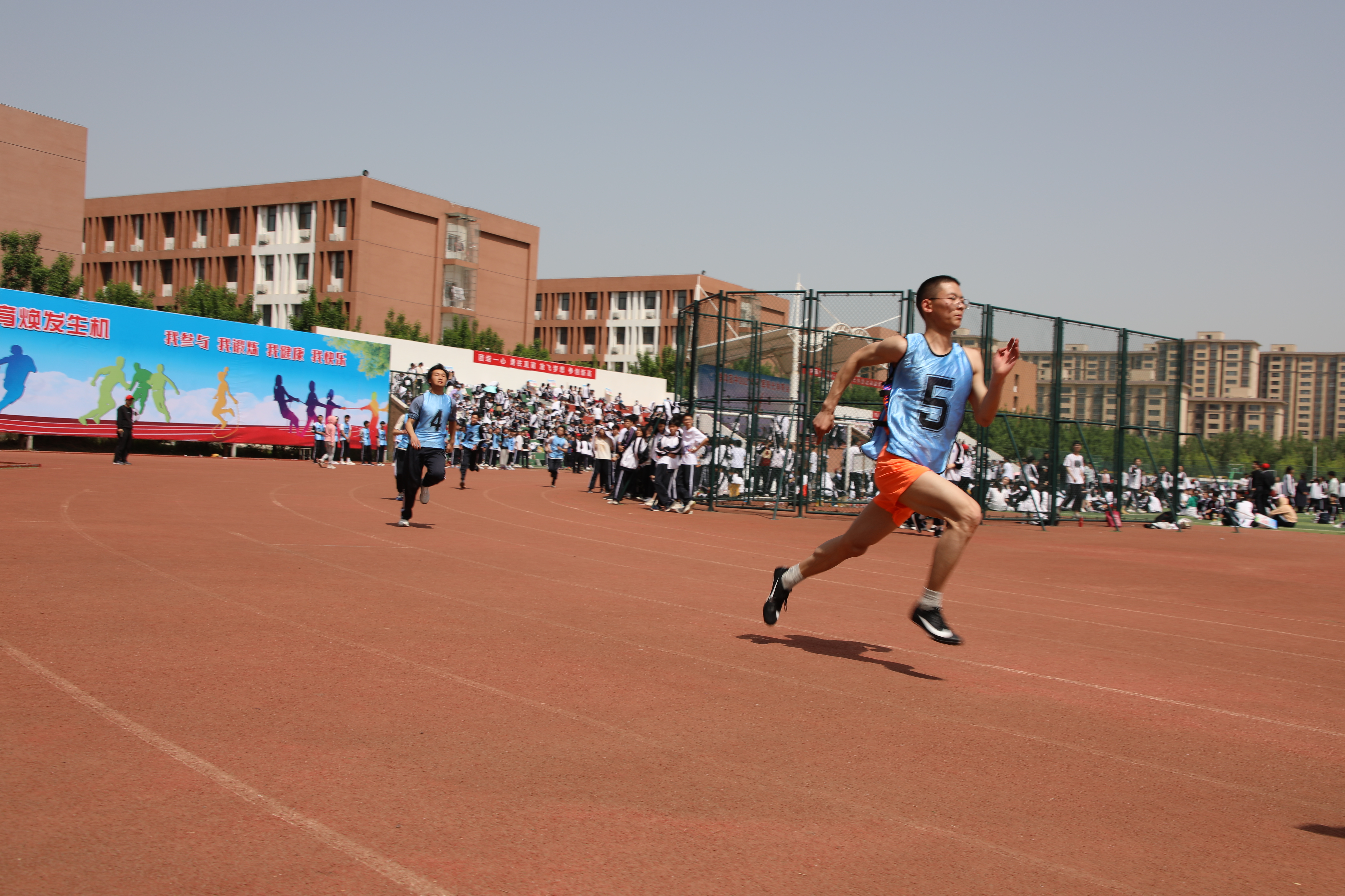 賽場(chǎng)上,運(yùn)動(dòng)員精神飽滿、斗志昂揚(yáng),青春的活力迸發(fā)在賽場(chǎng)上的每一個(gè)角落;啦啦隊(duì)隊(duì)員們鼓勁加油、吶喊助威。青春的激情、矯健的身影成為運(yùn)動(dòng)場(chǎng)上最美的風(fēng)景線。運(yùn)動(dòng)場(chǎng)上,同學(xué)們展現(xiàn)出來的不僅是強(qiáng)健的體魄、運(yùn)動(dòng)的技能,還有頑強(qiáng)的意志、青春的風(fēng)采,更有崇高的集體榮譽(yù)感。③6