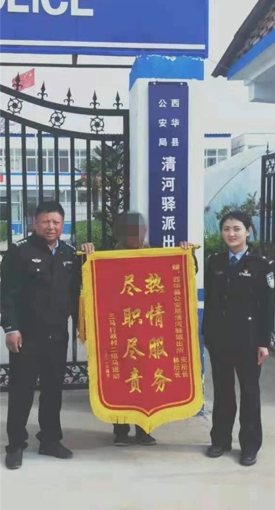 馬某給民警送錦旗致謝