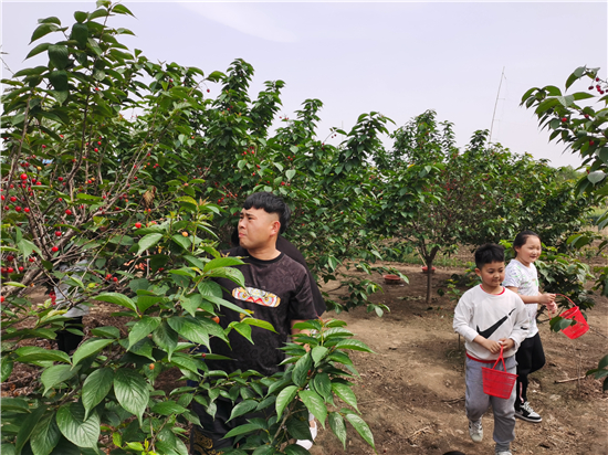 櫻桃采摘園內(nèi)游客多