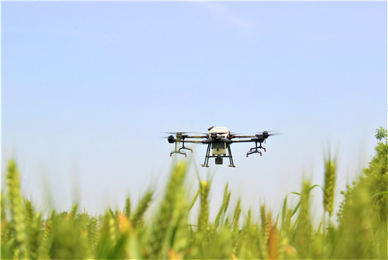 5月6日,在商水縣郝崗鎮(zhèn)郝外村田間,飛機(jī)操作員對(duì)飛機(jī)進(jìn)行調(diào)試,準(zhǔn)備開展小麥“一噴三防”。