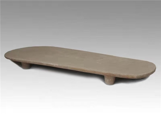 仔細(xì)端詳這臺(tái)石磨盤,你會(huì)發(fā)現(xiàn)它的做工竟如此規(guī)整:由整塊黃砂巖磨制而成,長(zhǎng)100厘米,大頭寬44厘米,小頭寬22厘米,厚3.5厘米,表面平坦,沒(méi)有任何凹陷痕跡;兩邊呈直線,四角略呈弧形,底部也很平整,還有4個(gè)圓柱狀、支撐用的足,足長(zhǎng)5厘米左右。試想,在當(dāng)時(shí)生產(chǎn)工具極度落后的時(shí)期,要制作如此大而規(guī)整的一個(gè)石磨盤,需要耗費(fèi)多么大的勞動(dòng)量,需要花上多少年的時(shí)間,才能打磨出這么平坦光致的效果?也正因如此,石磨盤成為當(dāng)時(shí)先民的貴重財(cái)產(chǎn)。