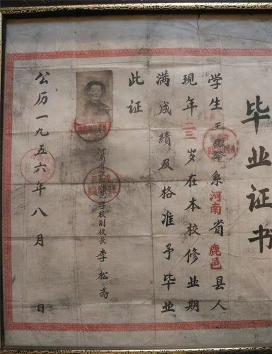 “在丘集任教一年后,我又考上了淮陽師資輪訓(xùn)班。當(dāng)時我任班團支書,那個班幾乎全是鹿邑人,爭勝好強,是全校最牛的一個班,全校24張獎狀,我們班就拿了23張,這在當(dāng)時是很讓人意外的事?!蓖醯钆e笑著說,一個同學(xué)得知我以前演過戲,就推薦我加入學(xué)校的文藝隊,演丑角“于大扯”,因為角色特殊,導(dǎo)致全校同學(xué)都忘記了我的真實姓名,見面都喊“于大扯”。每逢校會,都讓他說快板。1957年,反“右派”開始了,已經(jīng)在縣附小學(xué)校教書的王殿舉被錯劃成“右派”,因平時人緣不錯,并沒有被武力批斗,只是象征性批評。