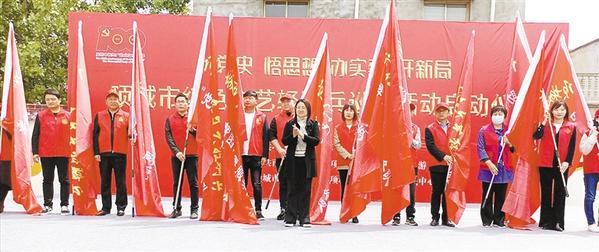 4月27日,由項城市委宣傳部主辦的“學(xué)黨史 悟思想 辦實事 開新局——項城市紅色文化輕騎兵巡講活動啟動儀式”在南頓鎮(zhèn)水牛劉村舉行。市委常委、宣傳部長劉娟出席啟動儀式,來自全市14支紅色文藝輕騎兵小分隊140人參加了活動。 記者 楊光林 通訊員李高華 攝