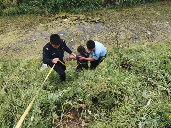 5月1日上午,劉振屯派出所巡邏民警在日常安全巡邏中發(fā)現(xiàn)一河道邊有大量群眾圍觀。發(fā)現(xiàn)此情況,趙世界帶領雷亮、蔣金洲、李碩到場查看,發(fā)現(xiàn)一女子站在河道里。趙世界首先穩(wěn)控住女子情緒,詢問后得知其因為與家人生氣走到河邊時不慎滑落到河道底部,家人多次勸解其仍然不上岸,民警一邊穩(wěn)控其情緒對其進行勸解,一邊叫民警到附近群眾家找到長繩并系其腰上。民警們相互配合,將女子解救上岸并對其進行心理輔導。此次解救成功,引得現(xiàn)場群眾掌聲一片。②5