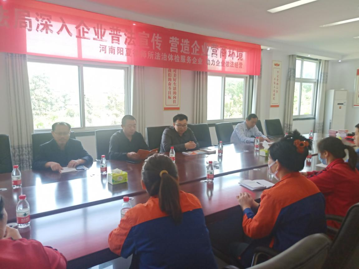 為進(jìn)一步提升企業(yè)依法經(jīng)營能力,優(yōu)化企業(yè)營商環(huán)境,5月8日,太康縣司法局副局長袁忠玉帶領(lǐng)縣司法局工作人員和河南陽夏律師事務(wù)所執(zhí)業(yè)律師先后到河南通泰紡織有限公司、河南省四通鍋爐有限公司等企業(yè)開展法治宣傳、法律服務(wù)活動。