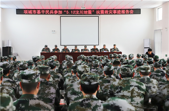 5月12日,是汶川地震13周年紀(jì)念日。正在參加訓(xùn)練的項城市200名基干民兵中,共有10位同志曾經(jīng)以救災(zāi)戰(zhàn)士的身份親歷過那場地震。為激勵廣大參訓(xùn)民兵,緬懷那場地震中的死難者,項城市在民兵訓(xùn)練基地組織了一場特殊的報告會——"老兵抗震救災(zāi)先進(jìn)事跡報告會"。