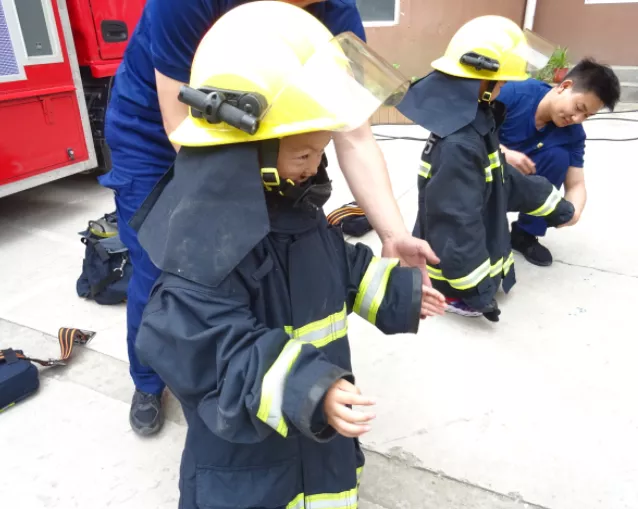 培訓(xùn)中,消防大隊宣傳人員利用精心準(zhǔn)備的課件內(nèi)容,結(jié)合幼兒園孩子年齡小、好奇心強、安全意識淡薄等特點,采用通俗易懂、幽默風(fēng)趣的語言為小朋友們講解如何防止火災(zāi)發(fā)生、發(fā)生火災(zāi)時如何逃生、如何報警、如何使用滅火器等消防安全常識。為了讓孩子們真實地體驗一番,在工作人員的帶領(lǐng)下,孩子們紛紛試戴消防帽、試穿滅火防護服,充分體驗了一回當(dāng)消防員的感受。