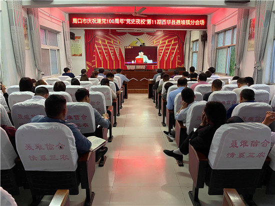 5月13日,周口市舉辦慶祝建黨100周年“黨史夜?!钡?1期。西華縣聶堆鎮(zhèn)設置1個主會場、22個分會場,組織全鎮(zhèn)黨員干部參加“黨史夜校”學習。