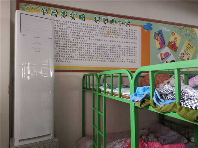 記者看到,午休中心寬敞明亮,美觀大方,干凈舒適。大功率空調(diào)適時(shí)開放,空氣清新怡人,午休時(shí),孩子們很快就能進(jìn)入夢(mèng)鄉(xiāng)。午休中心的新床一律采用松樹木質(zhì)床板,整屋散發(fā)著樹脂的清香。