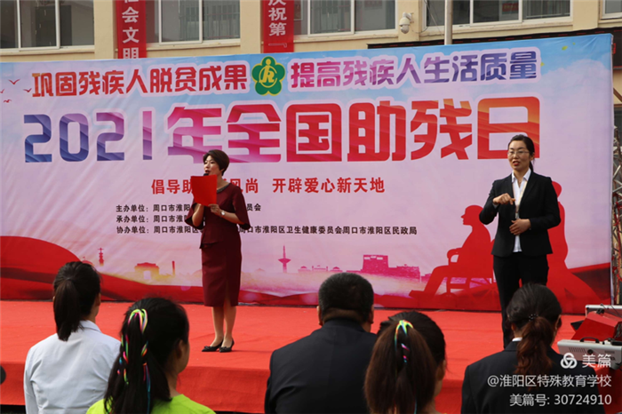 在全國助殘日來臨之際,為了進(jìn)一步增進(jìn)社會各界對該校的了解和認(rèn)可,展示學(xué)校一年來的教育教學(xué)成果,貫徹執(zhí)行國家對殘疾人的教育和幫扶政策,回饋社會各界對殘疾學(xué)生的關(guān)心和愛護(hù),弘揚(yáng)社會傳統(tǒng)美德,淮陽區(qū)特殊教育學(xué)校舉行了助殘日活動。