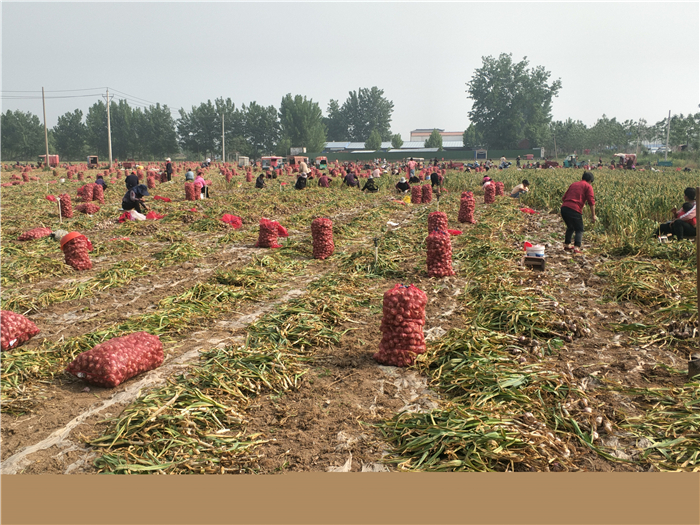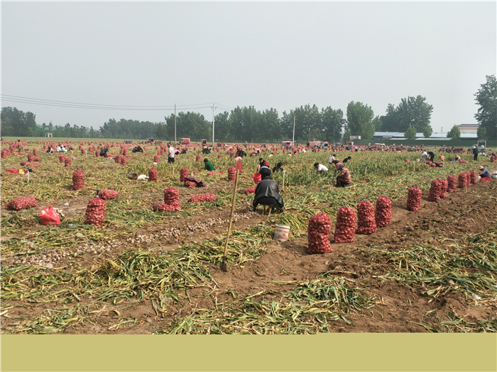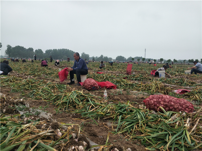 時(shí)下,正是大蒜收獲季節(jié),在太康縣獨(dú)塘鄉(xiāng)劉莊無(wú)公害大蒜種植基地田間地頭,蒜農(nóng)們正忙著采收、裝車(chē)、銷(xiāo)售,到處都是蒜農(nóng)收獲大蒜的忙碌景象,優(yōu)質(zhì)大蒜喜獲豐收讓蒜農(nóng)們個(gè)個(gè)笑逐顏開(kāi)。