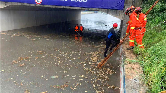 5月15日11時48分,天降大雨,開發(fā)區(qū)消防救援大隊接到路過群眾報警,稱位于中原路與開來路交叉口的涵洞內(nèi),有兩人被困于車頂,急需救援。開發(fā)區(qū)消防救援大隊立即調(diào)派開來路消防救援站的12名指戰(zhàn)員、2輛消防車火速前往救援。