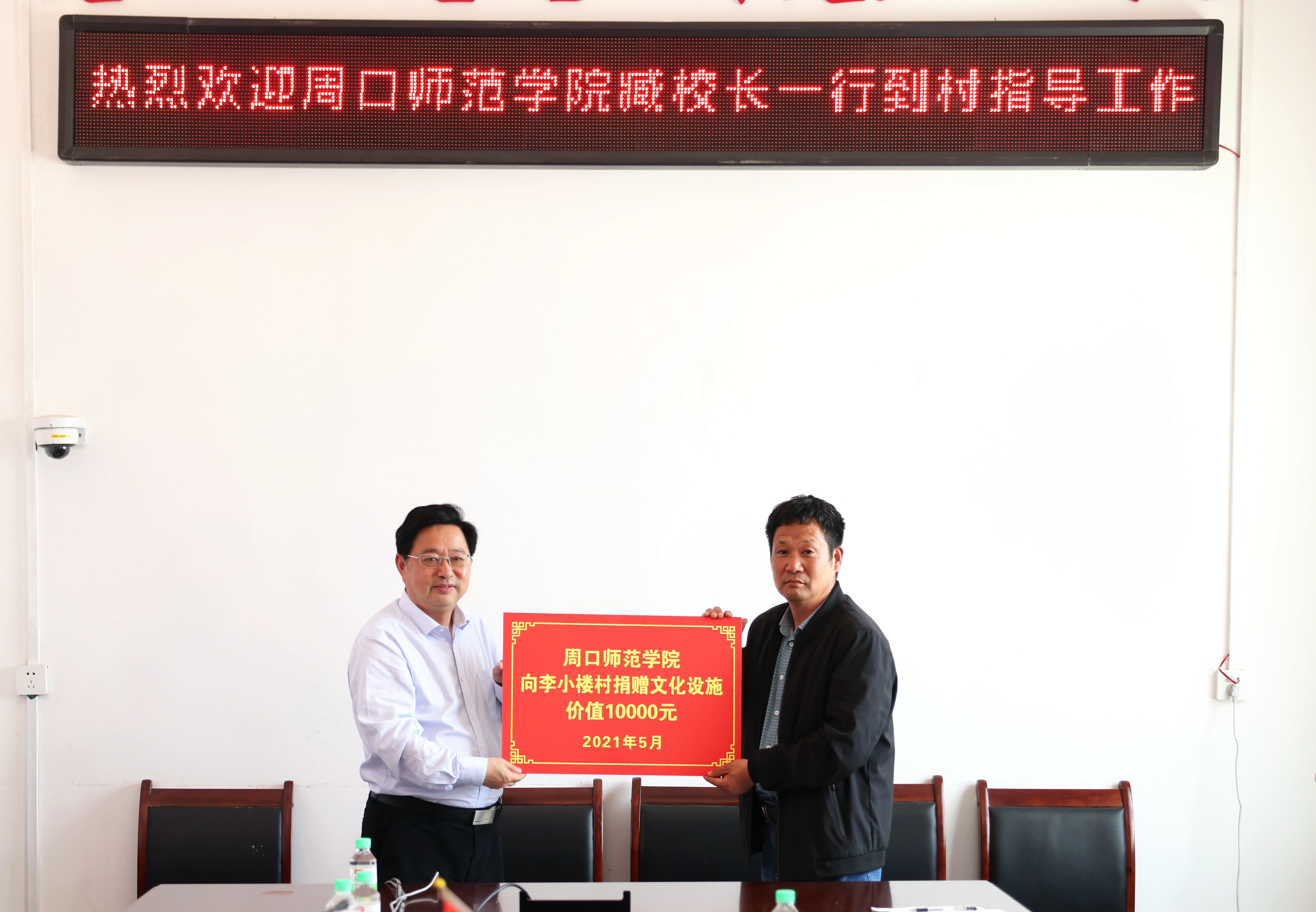 5月21日,周口師范學(xué)院院長臧振春、副院長周立華一行來到鄲城縣李樓鄉(xiāng)李小樓行政村,慰問該院駐村第一書記和困難群眾,調(diào)研拓展鞏固脫貧攻堅(jiān)成果同鄉(xiāng)村振興有效銜接工作,并向李小樓行政村捐贈價(jià)值1萬元的文化設(shè)備。市人大常委會副主任、鄲城縣委書記羅文閣參加調(diào)研。