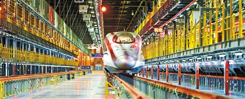 鄭州南動(dòng)車(chē)所對(duì)標(biāo)準(zhǔn)組動(dòng)車(chē)進(jìn)行檢修。近年來(lái),高鐵新線的陸續(xù)開(kāi)通,為鄭州逐步建設(shè)成國(guó)際性綜合交通樞紐提供了強(qiáng)勁動(dòng)力。 王 錚攝(中經(jīng)視覺(jué))