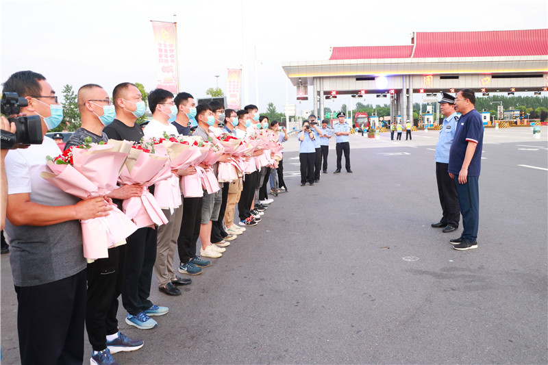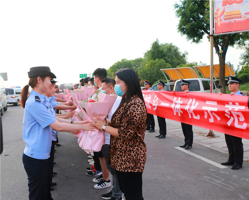 當(dāng)日19時許,示范區(qū)二級調(diào)研員丁有亮,示范區(qū)公安分局黨委書記、局長何學(xué)民等同志前往迎接,歡迎勝利歸來的抓捕民警。當(dāng)抓捕組車輛駛出高速路口時,現(xiàn)場響起熱烈的掌聲。丁有亮、何學(xué)民與參戰(zhàn)民警一一親切握手,對凱旋的民警表示歡迎和祝賀,民警代表將象征勝利和榮譽(yù)的鮮花獻(xiàn)給抓捕組民警。丁有亮表示向不辱使命、不畏艱險(xiǎn)、勇打勝仗的參戰(zhàn)民警表示慰問,并要求他們把握戰(zhàn)機(jī),繼續(xù)擴(kuò)大戰(zhàn)果,再接再厲,再立新功。何學(xué)民指出,示范區(qū)公安分局將乘勢而上、提振士氣,縱深開展“迅雷”行動,出重拳打擊電信詐騙犯罪行為。