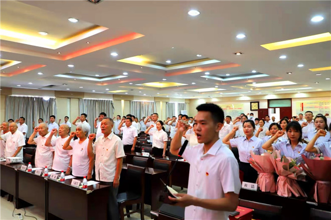 大會在莊嚴的國歌聲中拉開序幕。隨后,全體黨員以滿腔的熱情,面向黨旗,重溫入黨誓詞。黨旗熠熠生輝,誓言鏗鏘有力,展現(xiàn)了新時代電力人為黨的事業(yè)奮斗終生的信心和決心。