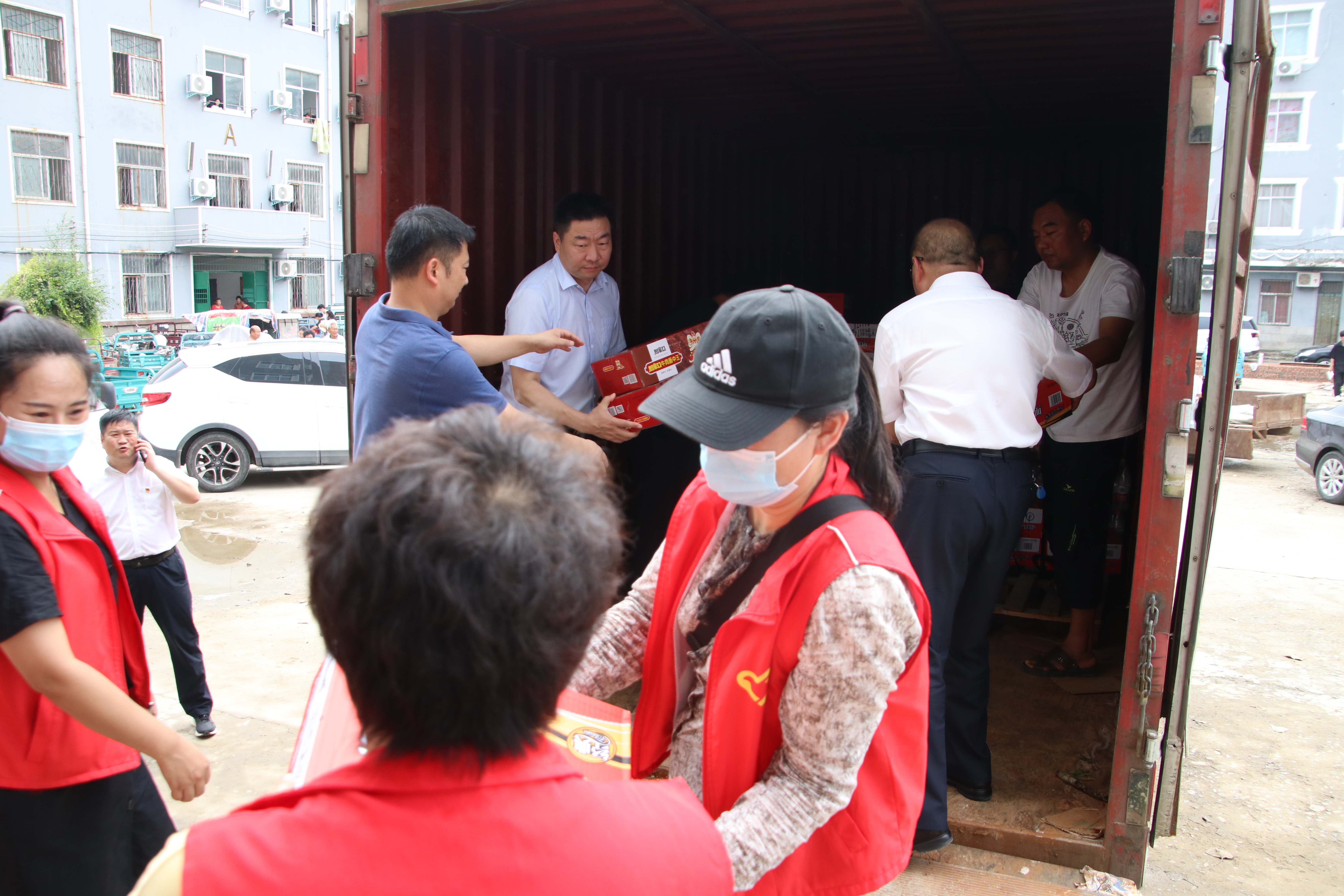 7月22日,周口市農(nóng)信辦黨組書記盛毅一行赴扶溝二高安置點送去200箱飲用水、100箱方便面、100箱火腿腸、50箱面包等物資,看望慰問安置點工作人員和因災轉移的群眾。(李鳳霞 林根深攝)