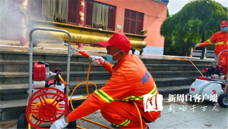 在女?huà)z景區(qū),只見(jiàn)老關(guān)和其他3名消殺人員發(fā)動(dòng)機(jī)器、拉出噴管、手提噴槍,一邊前進(jìn),一邊揮動(dòng),白色水霧隨之噴涌而出,所到之處細(xì)菌病毒“無(wú)處遁形”。大家齊心協(xié)力,很快就把景區(qū)的角角落落消殺個(gè)遍。
