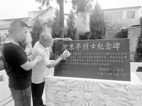 當(dāng)?shù)卣疄榫拺延⒘遥谏驏|平的家鄉(xiāng)舞陽縣太尉鎮(zhèn)林莊村,為沈東平建起墓地。