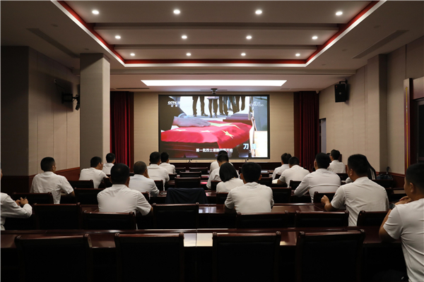 全體黨員面向黨旗集中宣誓,重溫入黨誓詞后,集中觀看學(xué)習(xí)黨史紀錄片《刀鋒》。