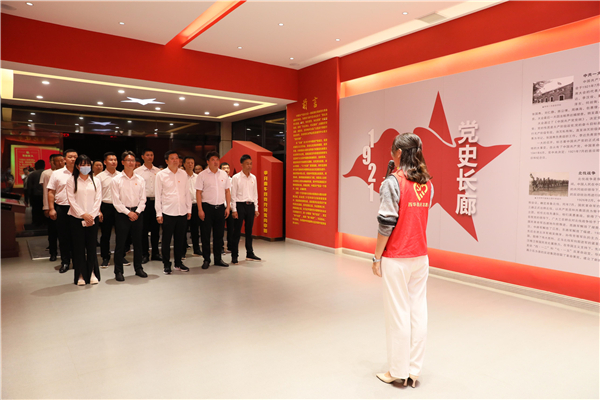 西華縣委黨員教育中心的紅色長廊里,一幅幅圖畫,一段段文字,見證著中國共產(chǎn)黨從誕生,到發(fā)展,到壯大,到帶領(lǐng)中國人民走向勝利的光輝歷程。通過志愿者講解員的精彩講解,全體黨員詳細了解了紅船精神、井岡山精神、長征精神、延安精神、西柏坡精神等色彩鮮明的紅色文化。