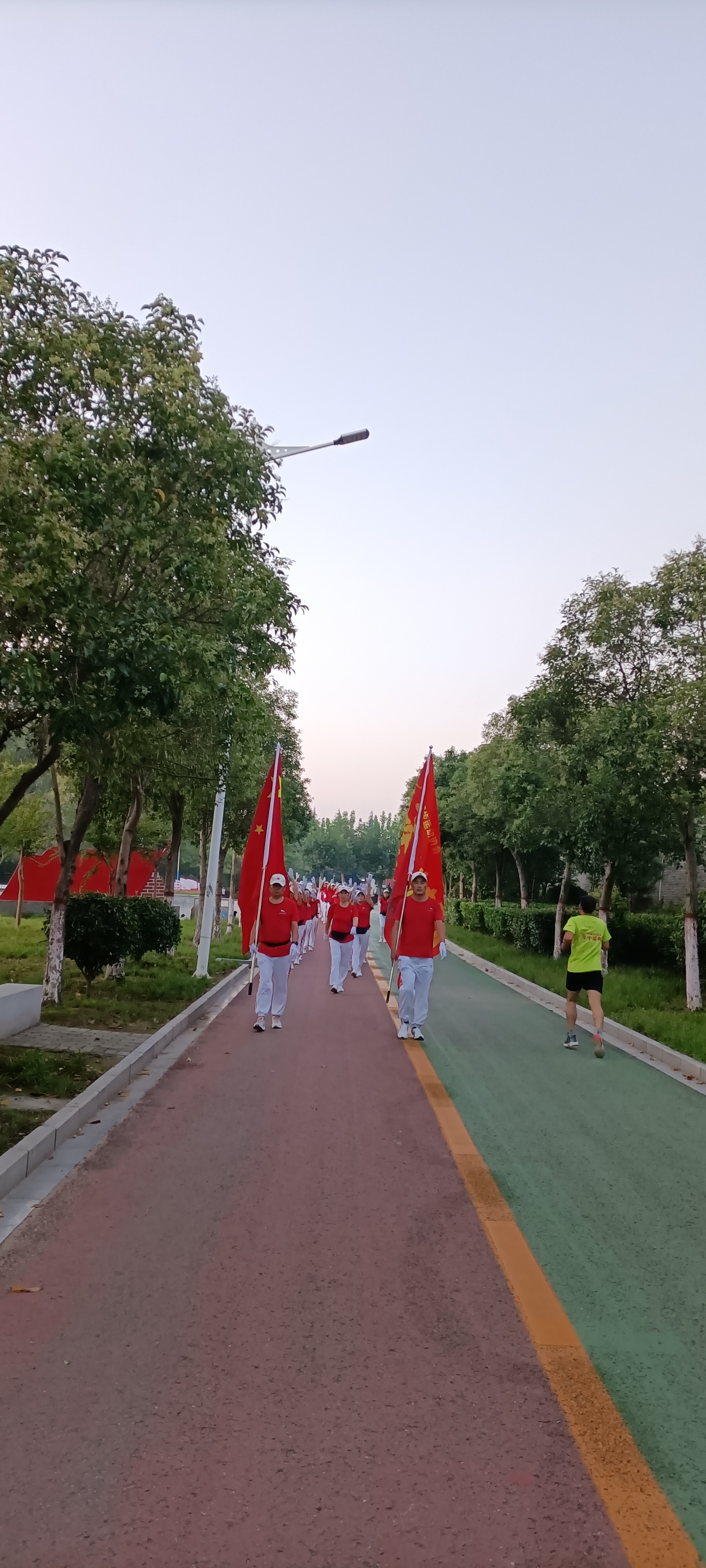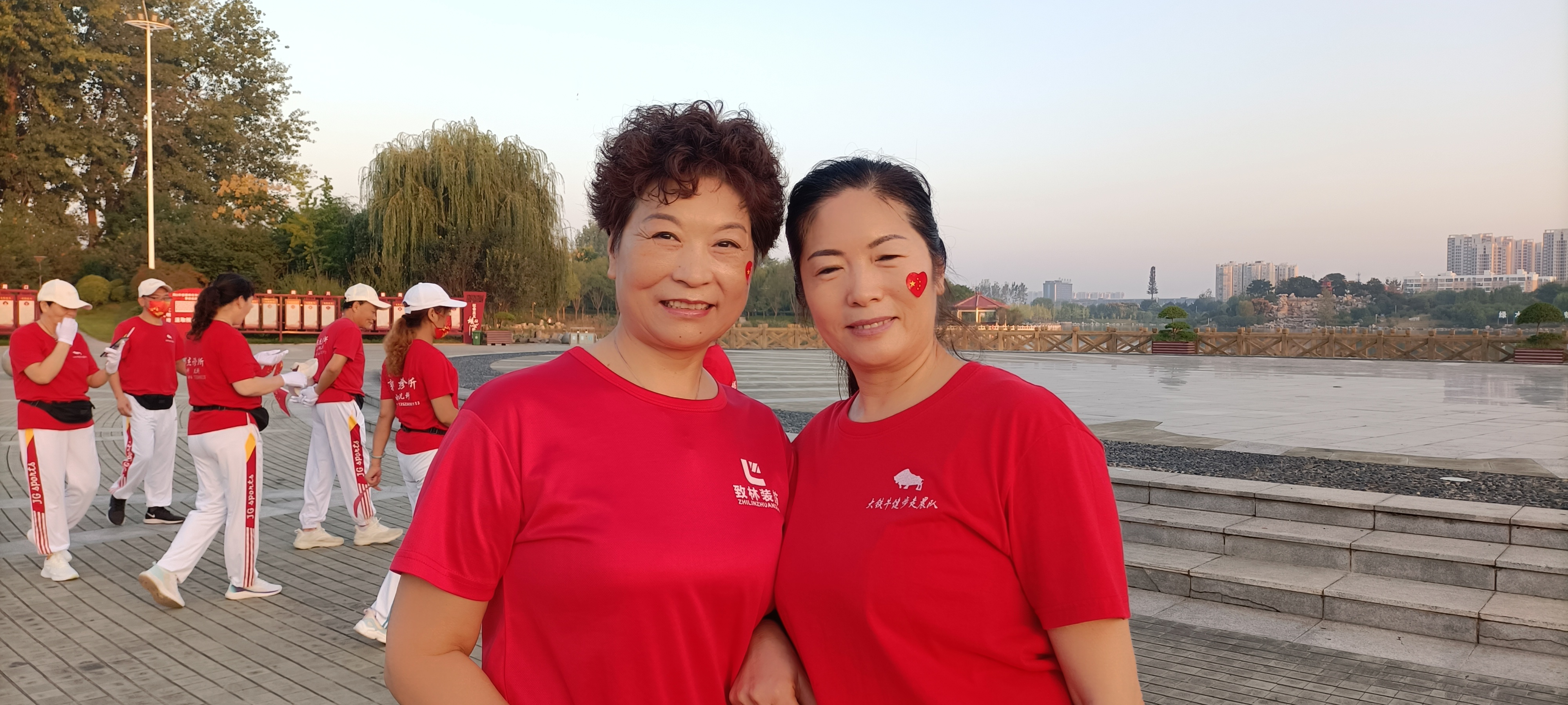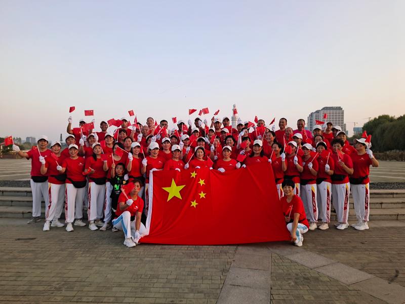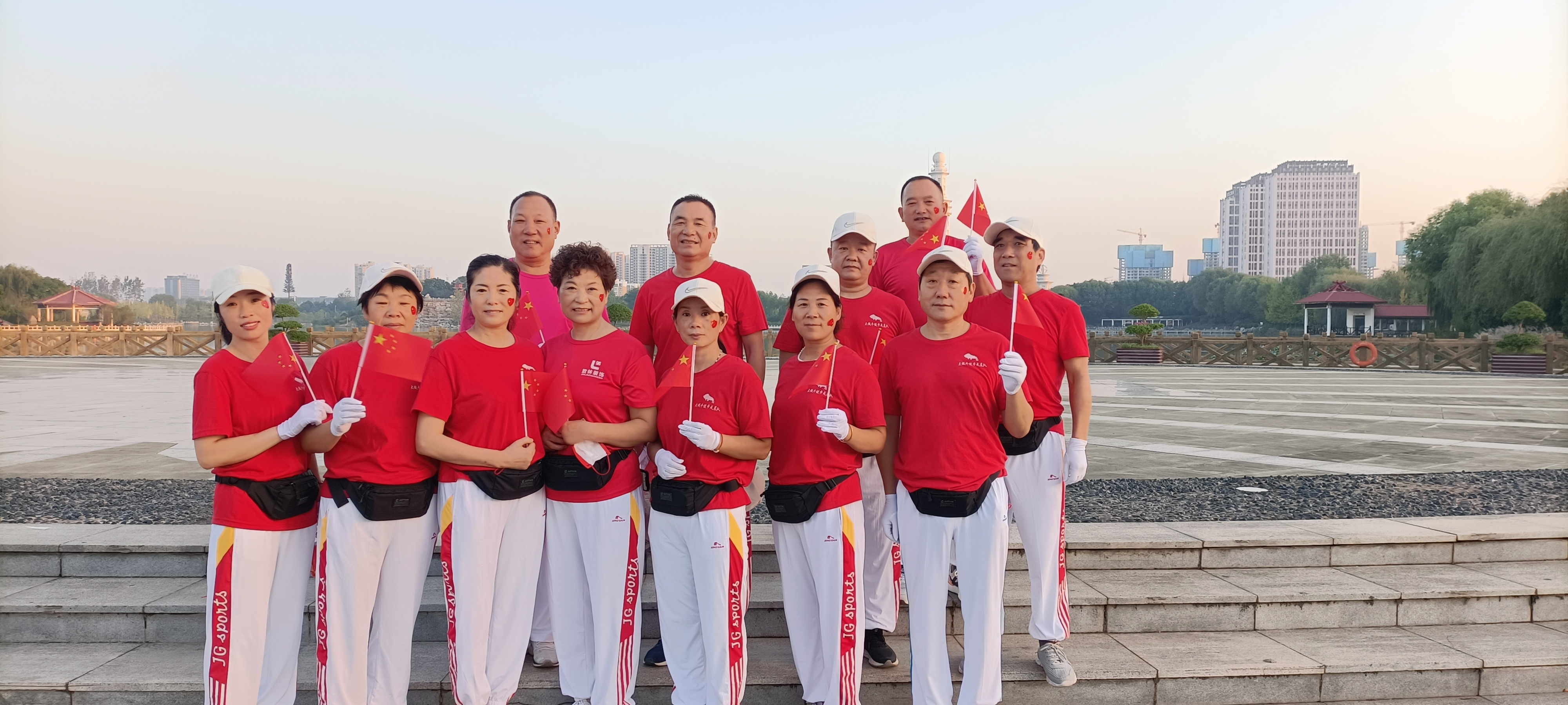 10月1日清晨,周口健步走大鐵牛晨隊(duì)的100余名隊(duì)員手持國旗,邁著矯健的步伐,迎著初升的朝陽,行走在周口公園,以健康的身姿慶祝祖國生日。周口日報(bào)·周道客戶端記者 高洪馳攝