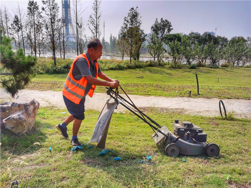 國慶節(jié)期間,在廣大人民群眾享受假期的時候,周口市城區(qū)沙潁河公園內(nèi),一群身著紅馬甲的園林綠化工人,不畏炎炎烈日,在公園綠化帶忙碌著修整綠植、草坪,用辛勤的汗水維護(hù)城市的美麗。②9