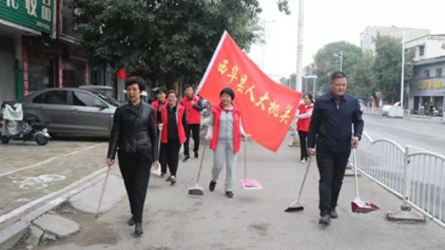 10月11日,西華縣人大常委會主任周曉燕帶領(lǐng)機關(guān)工作人員,深入分包區(qū)域的街道社區(qū)積極開展“創(chuàng)衛(wèi)”工作。
