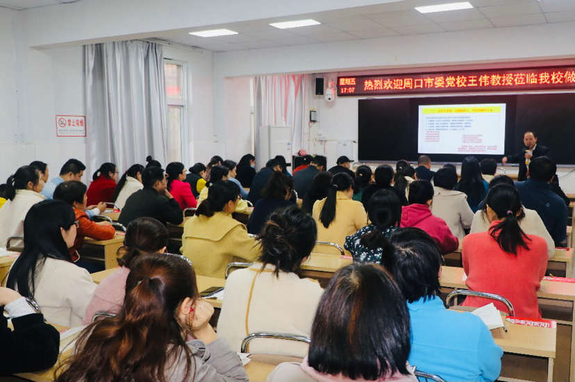 宣講會上,市委黨校宣講團(tuán)講師王偉以“深入學(xué)習(xí)貫徹市五次黨代會精神、開啟全面建設(shè)社會主義現(xiàn)代化周口新征程”為主題,從充分認(rèn)識市五次黨代會的重大意義、準(zhǔn)確把握市五次黨代會的精神要義、全面落實(shí)市五次黨代會的目標(biāo)任務(wù)三方面,詳盡解讀了市五次黨代會主旨報(bào)告的精神實(shí)質(zhì)和豐富內(nèi)涵。整場報(bào)告脈絡(luò)清晰、論述深刻、內(nèi)容豐富,既有深入淺出的理論闡述,又有結(jié)合我市發(fā)展的實(shí)例分析,更有教育實(shí)踐層面的對策思考,為該校教職工深入、完整、系統(tǒng)地領(lǐng)會市五次黨代會精神,有力推進(jìn)貫徹落實(shí)黨代會精神提供了一把“金鑰匙”。
