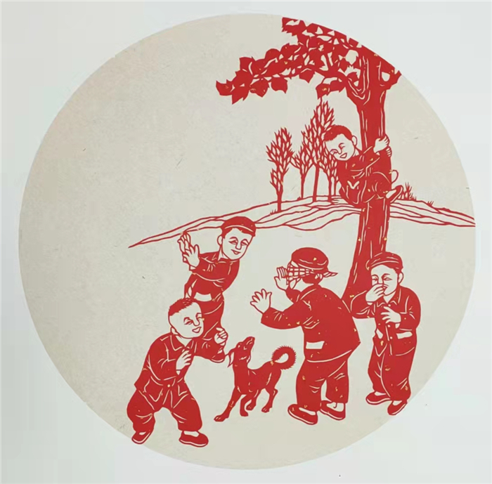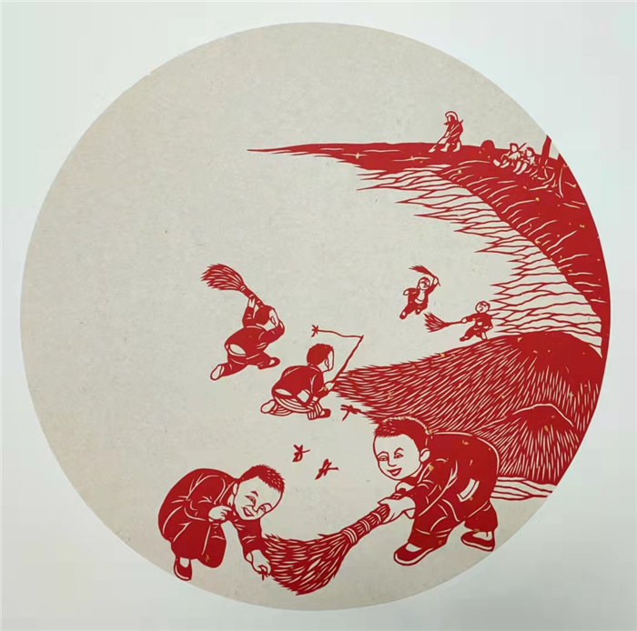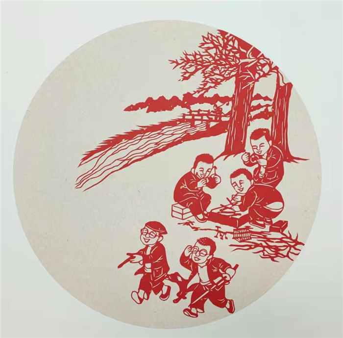 透過紅紙,有的孩童正神采飛揚地玩捉迷藏,有的正有模有樣地幫著長輩干農(nóng)活,還有的在乖巧地看長輩下象棋……為助力全國文明城市創(chuàng)建,表達(dá)對健康生活的熱愛,近日,周口剪紙非遺傳承人劉秀華創(chuàng)作出了一組“童趣”剪紙作品。