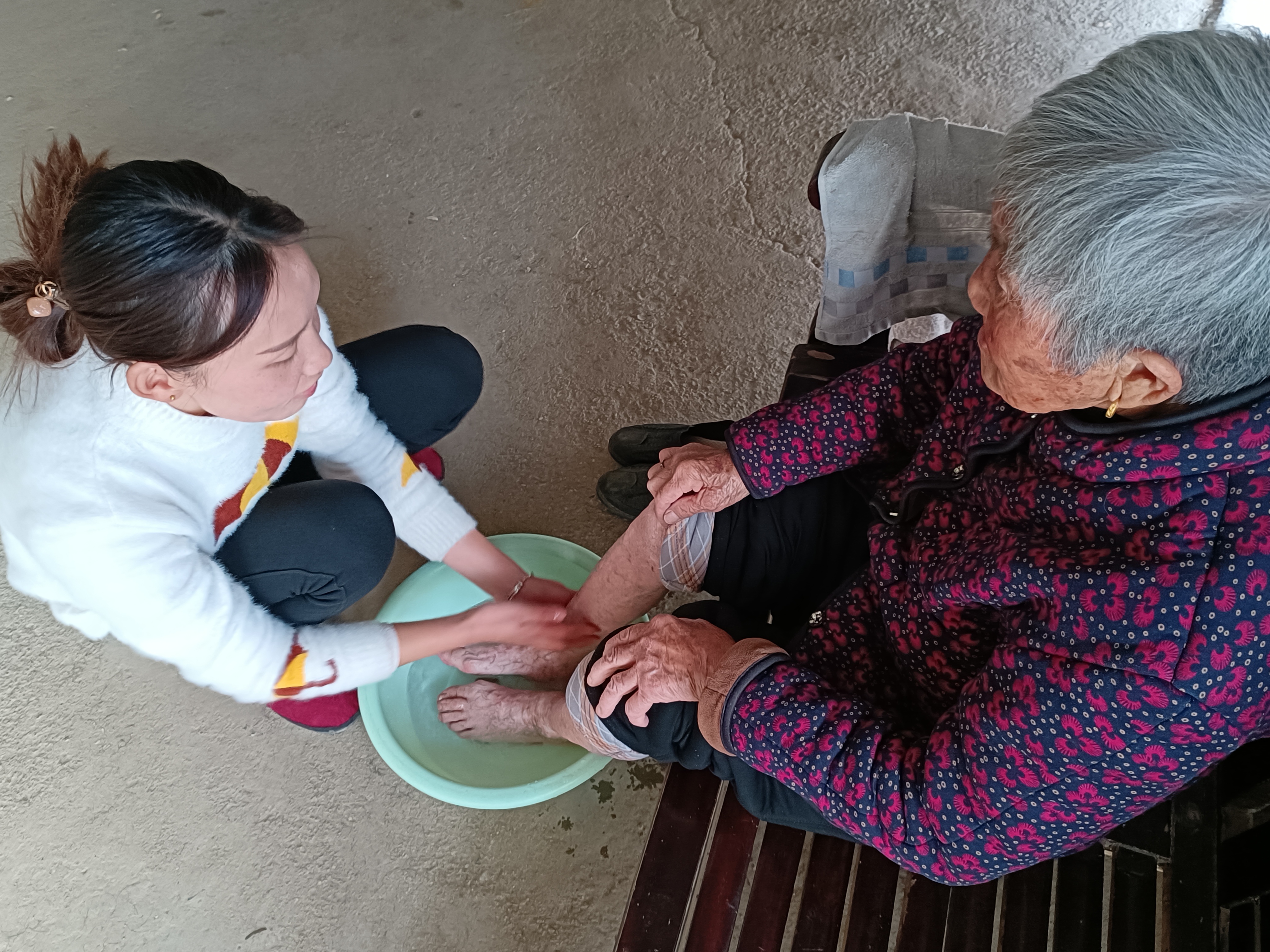 現(xiàn)年52歲的張書(shū)艷有三女一子,目前有兩個(gè)女兒已出嫁,小女兒郭錦大學(xué)畢業(yè)后在準(zhǔn)備招教考試,小兒子上小學(xué)六年級(jí)。言傳不如身教,在張書(shū)艷的帶動(dòng)下,孩子們對(duì)奶奶十分孝順,楊秀真逢人就夸:“俺孫女給我洗澡,俺孫子給我洗腳,他們整天讓我干干凈凈嘞!”