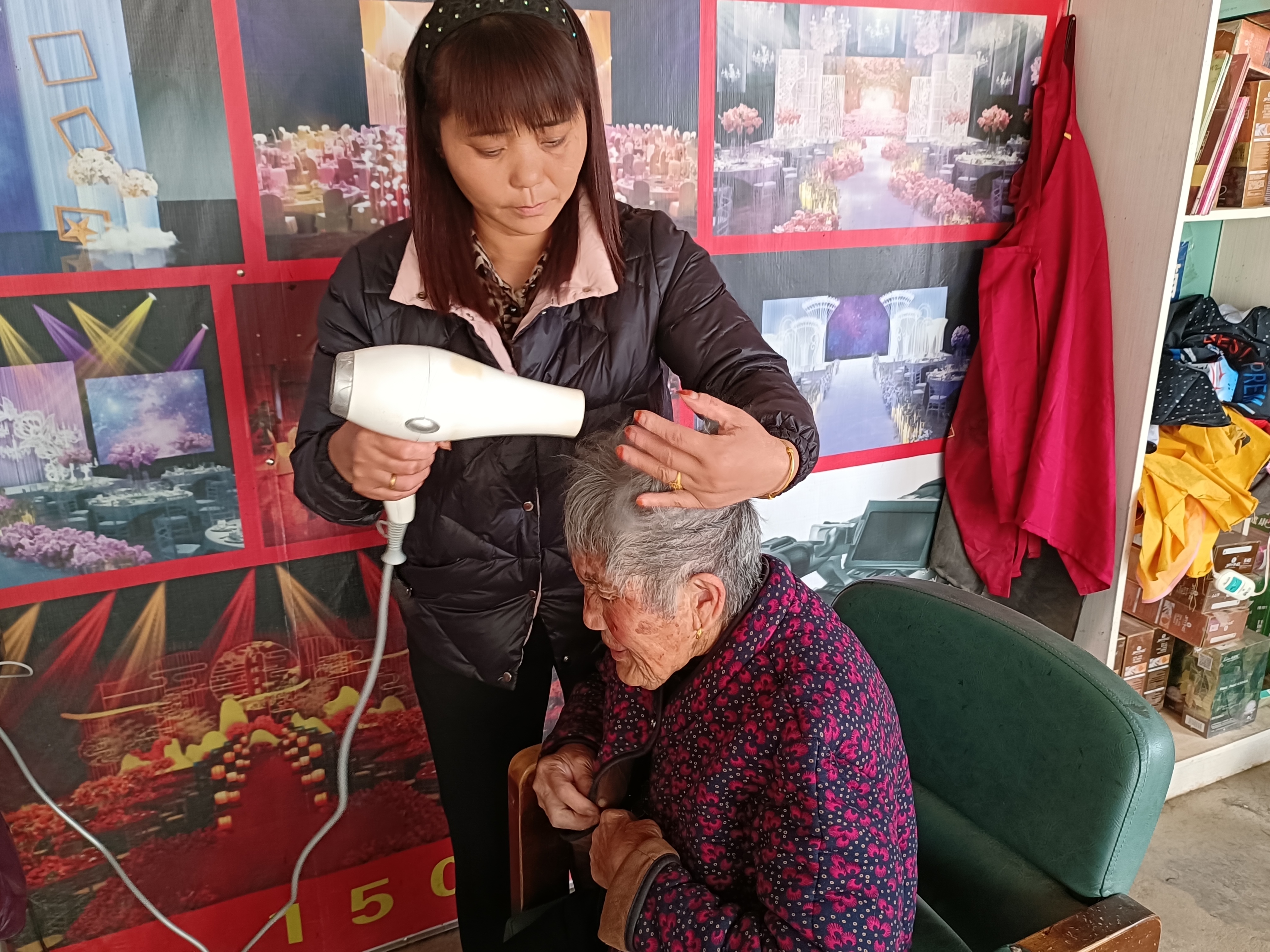 11月3日,記者接到熱線(xiàn)電話(huà),說(shuō)周口市城鄉(xiāng)一體化示范區(qū)搬口辦事處搬口行政村有位媳婦叫張書(shū)艷,她常年照顧90歲高齡的婆婆非常盡心。當(dāng)天下午,記者來(lái)到位于周口市第十六初級(jí)中學(xué)附近的名流美發(fā)店,見(jiàn)到了忙著給客人理發(fā)的張書(shū)艷,她婆婆楊秀真坐在旁邊,兩人之間的交流宛若親母女。
