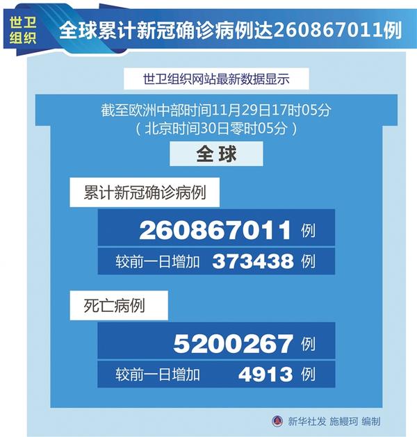 全球累計新冠確診病例達(dá)260867011例