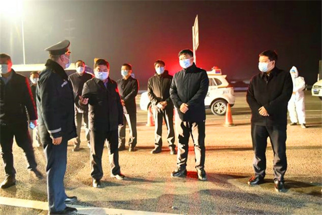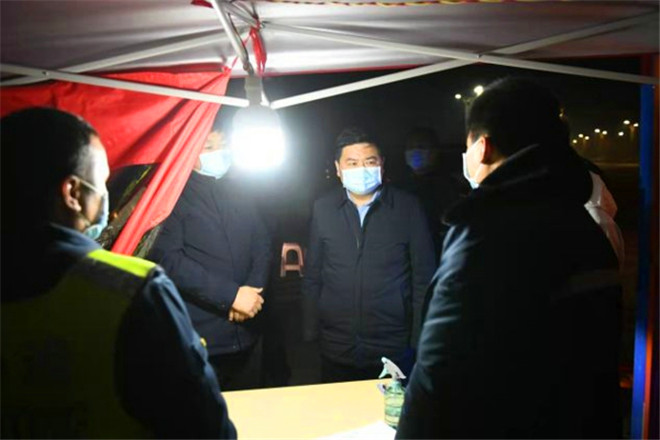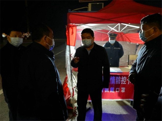 1月3日晚,鹿邑縣委書記李剛,縣委副書記、縣長郭俊濤帶領(lǐng)縣委辦、衛(wèi)健委、公安局、督查局、交通局等部門負(fù)責(zé)同志先后到鹽洛高速鹿邑西站、老子故里站疫情防控卡點(diǎn),實(shí)地檢查指導(dǎo)疫情防控工作。縣委常委、統(tǒng)戰(zhàn)部部長史凱歌,副縣長翟杰,縣政府領(lǐng)導(dǎo)成員谷長征一同檢查。③2